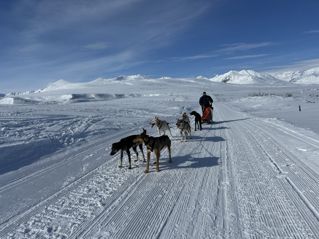 Es ist Anfang April 2025, Alaska Range. Minus fünfzehn Grad, das Licht flach wie eine Erinnerung. Ich als Co-Guide und Coach für sieben Teilnehmer, vier Hunde pro Schlitten und zwei Wochen Wildnis.